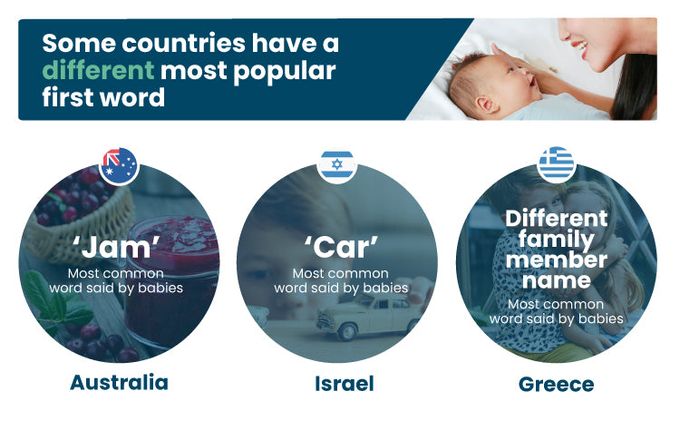 Possibly the most surprising, in Australia the most common word said by the youngest babies is ‘jam’! In Israel, babies are more likely to say ‘car’ than any other word.