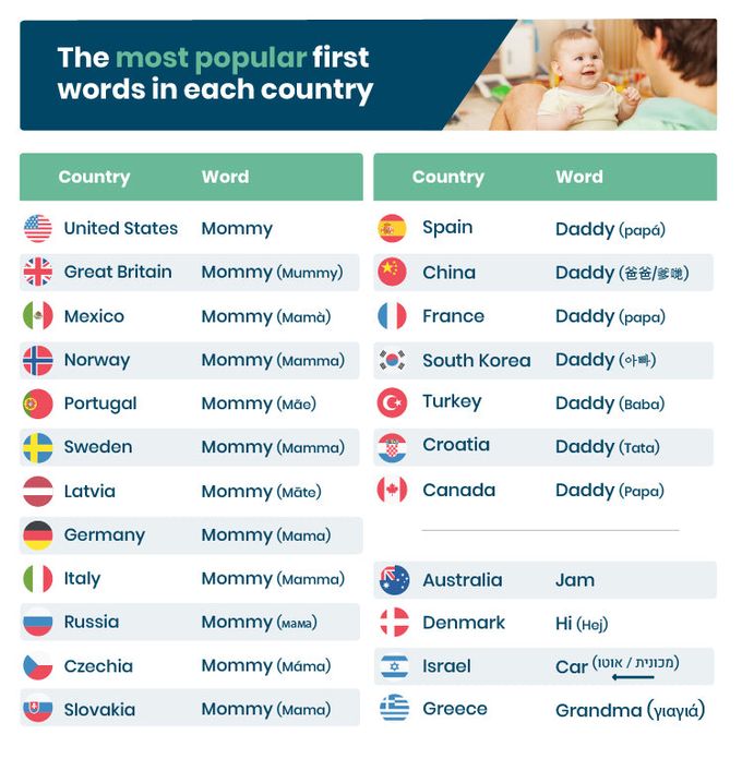 In four countries the most popular first words were neither ‘mommy’ nor ‘daddy’, but something else altogether!