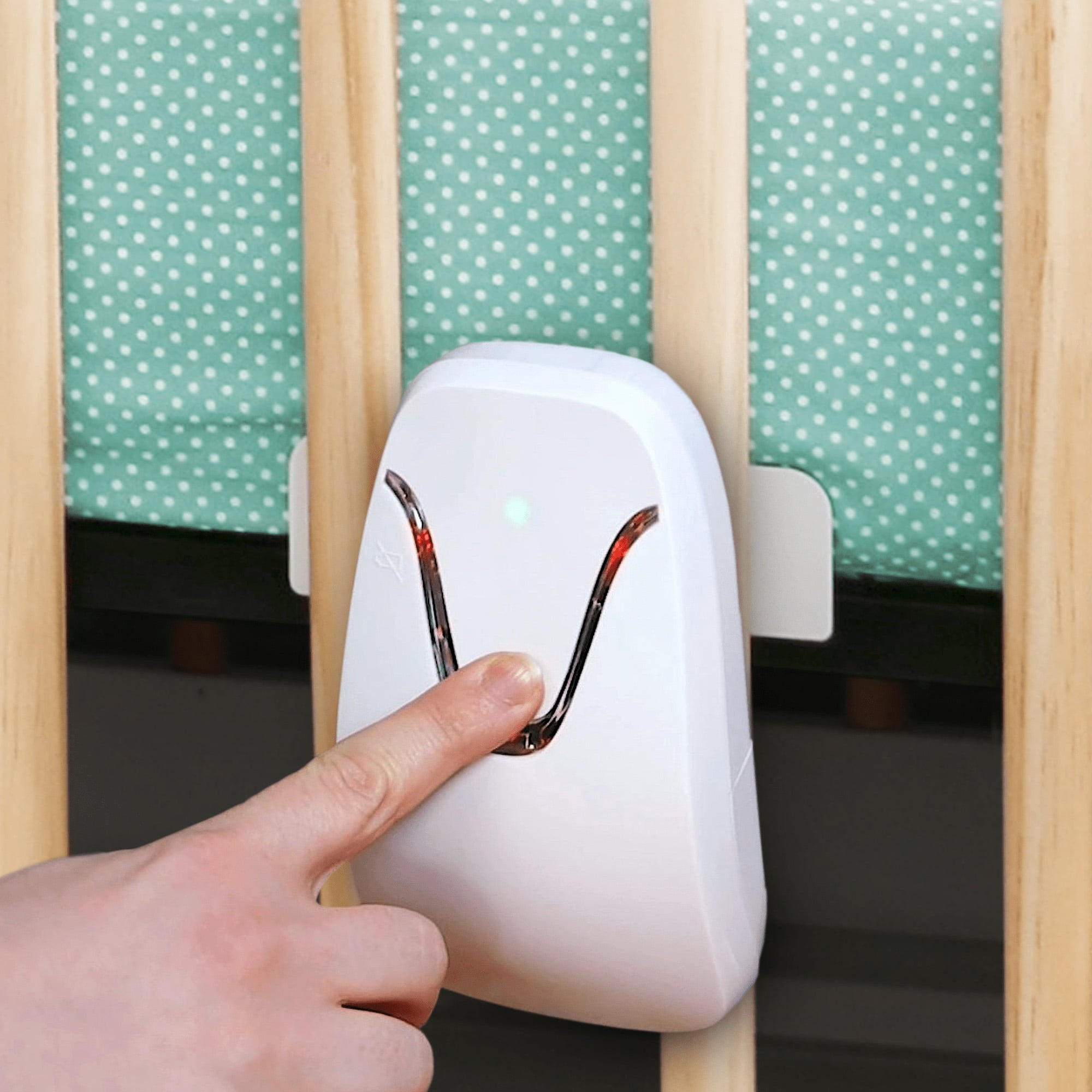 Our under-the-mattress movement monitor operates on regular AA batteries, so there are no dangerous power cords. It also features a “Hidden Cable Installation” concept to keep the cords out of sight and reach. The passive sensor system is totally safe and has no direct contact with the baby.